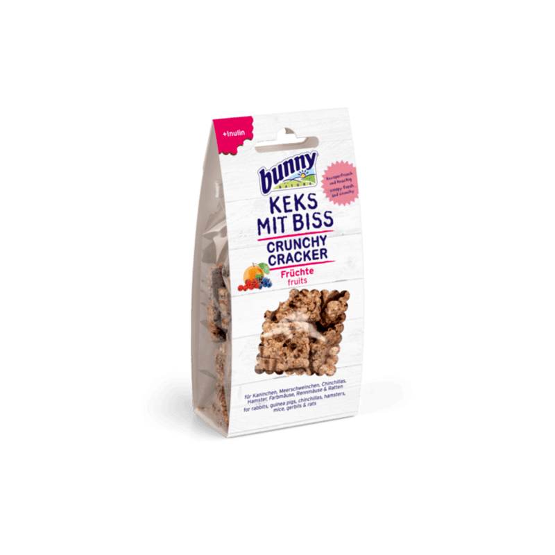 C'est un incroyable complément alimentaire avec une délicieuse sélection de fruits pour les lapins nains, cochons d'Inde, chinchillas, hamsters, souris domestiques, gerbilles et rats. Vos petits rongeurs adoreront ce produit de la marque Bunny au goût de fruits et en forme de crunchy cracker, ce qui en fait le choix parfait pour les offrir en récompense.