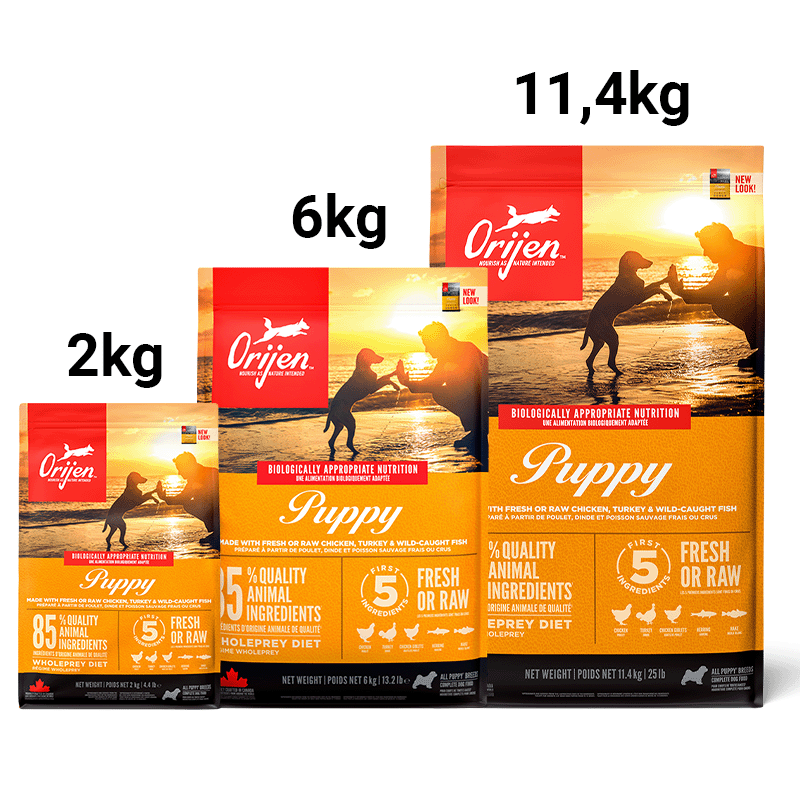 ORIJEN™ Puppy fournit une alimentation biologiquement appropriée avec une teneur élevée en protéines et en matières grasses.
