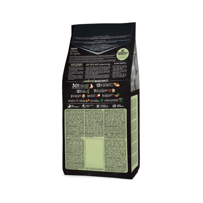 La combinaison d'ingrédients naturels fait d'Ownat Ultra Mini Adulte un aliment hautement digestible au goût irrésistible. Il contient également de la glucosamine et de la chondroïtine pour prendre soin des articulations, ainsi que des vitamines et des minéraux essentiels. Les acides gras oméga 3 et oméga 6 favorisent une peau et un pelage sains. Ces croquettes ne contiennent ni conservateurs ni colorants artificiels.