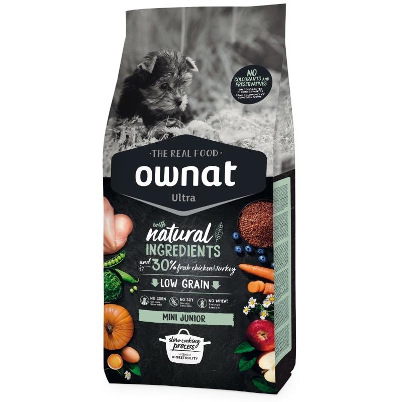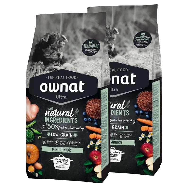 Le processus de cuisson lente à basse température d'Ownat Ultra Mini Junior préserve la qualité nutritionnelle. Il contient des acides gras oméga 3 et oméga 6 pour une peau saine et un pelage brillant, ainsi que de la glucosamine et de la chondroïtine pour soutenir la santé des articulations. Ces croquettes sont un choix savoureux et nutritif pour votre chiot.