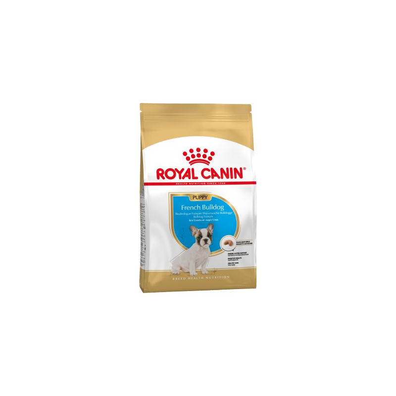 Royal Canin Bouledogue Français Junior est un aliment spécialement conçu pour les chiots jusqu'à 12 mois, adapté aux besoins nutritionnels de leur phase de croissance.