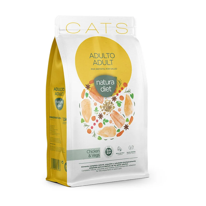 Ce croquette Natura Diet Adult est formulé pour fournir une alimentation équilibrée et délicieuse, adaptée aux besoins de votre chat afin qu'il maintienne un mode de vie sain et actif.